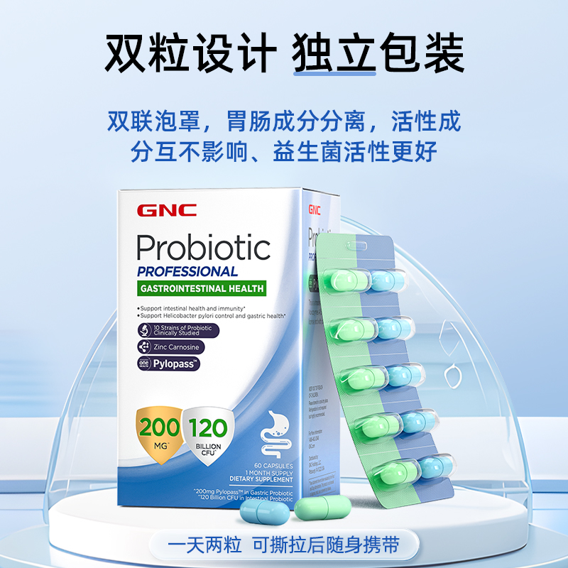 GNC健安喜成人雙聯益生菌女性膠囊調理胃腸拉肚子