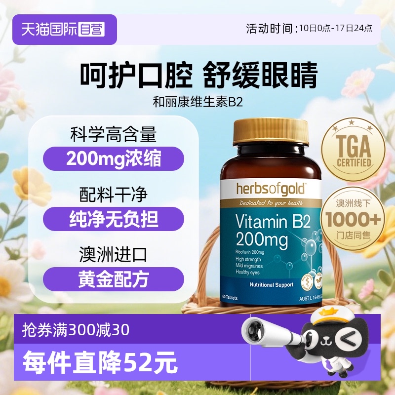 【自營】herbsofgold和麗康澳洲進口 維生素 B2 200mg 60片*1
