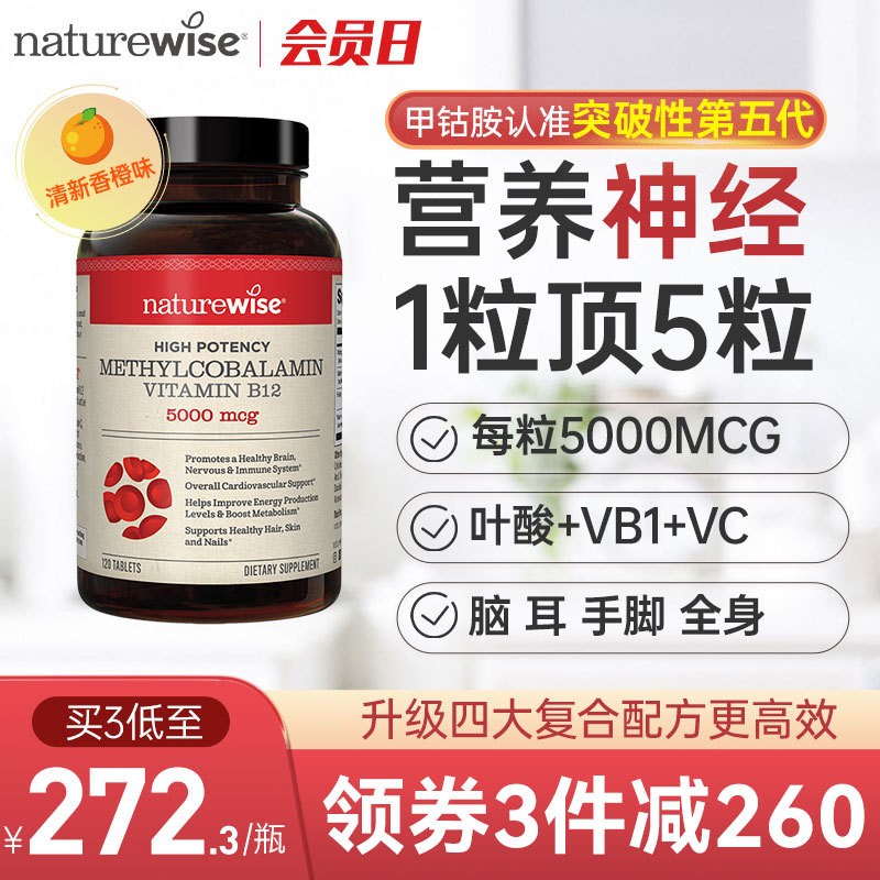 Naturewise小橙丸甲鈷胺修復營養神經損傷面腦部維生素b12b1葉酸