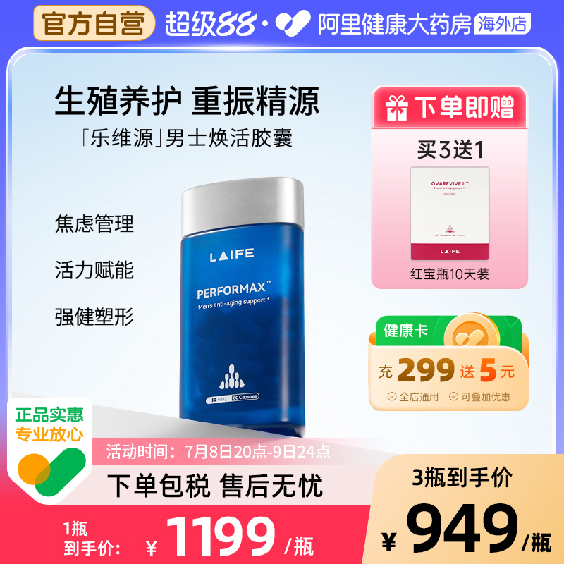 LAIFE樂維源官方藍寶瓶男士煥活膠囊東革阿里南非醉茄美國進口1瓶