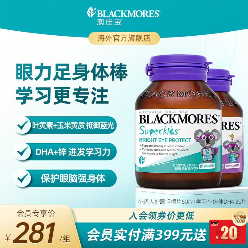 澳佳寶BLACKMORES小超人葉黃素60片+兒童DHA鋅30粒