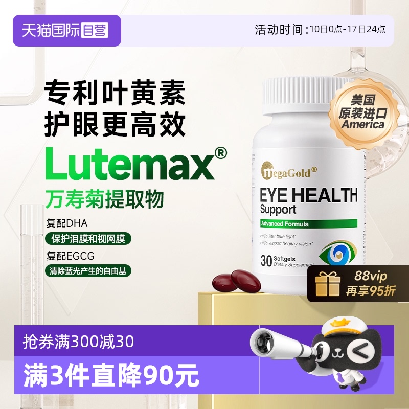 【自營】MegaGold防藍光護眼軟膠囊進口成人葉黃素保護視力正品