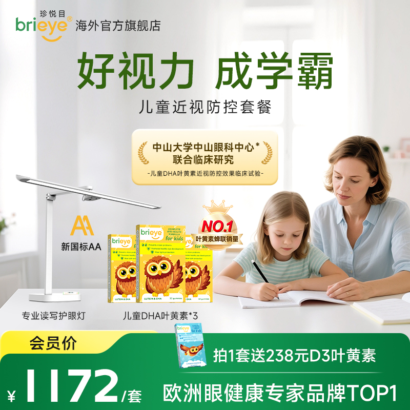 【主播推薦】brieye珍悅目兒童dha葉黃素*3+專業護眼燈防近視套裝