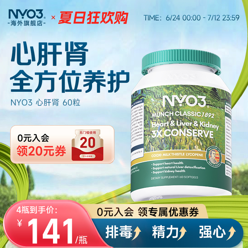 NYO3挪威心肝腎同補片高含量天然奶薊草水飛薊素輔酶加班熬夜應酬