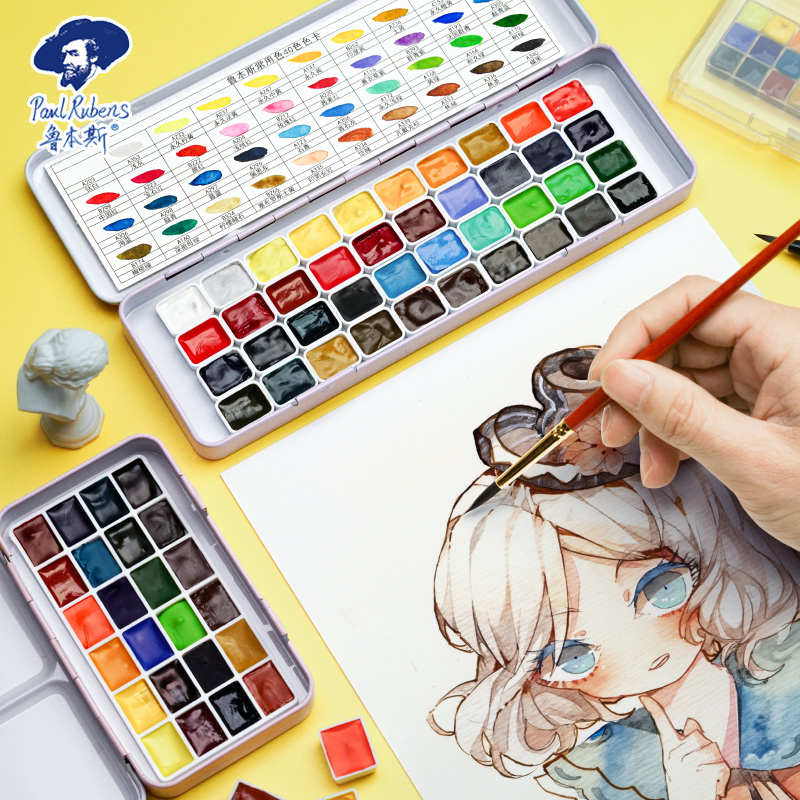 魯本斯固體水彩顏料分裝水彩工具套裝24色40色官方配色迷你鐵盒糖