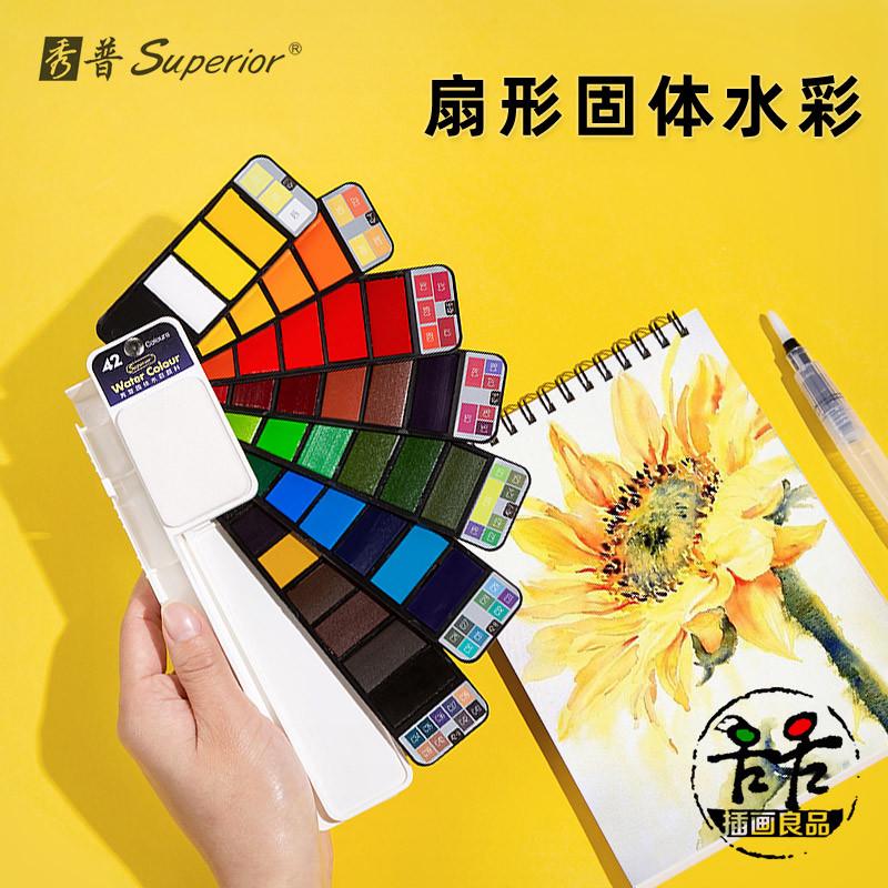 秀普 扇形固體水彩顏料 便攜濃縮海綿套裝 學院級固彩 學生入門級