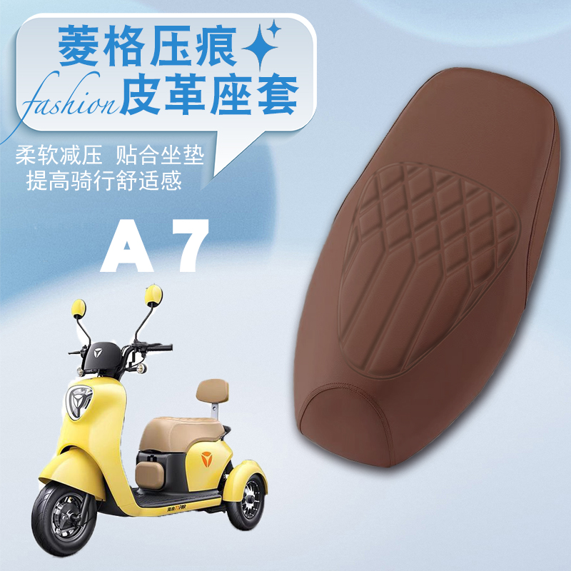 適用雅迪冠能A7電動車專用菱形皮革套防水防曬加厚兒童座套冠能A7