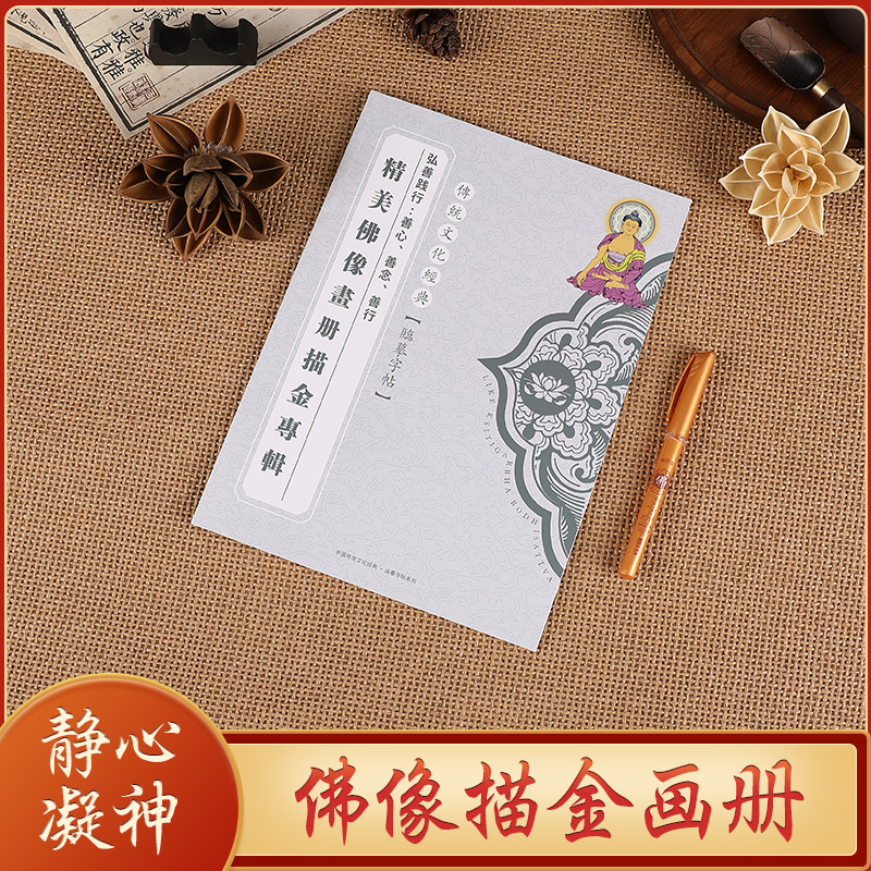 描金畫冊畫像觀世音菩薩地藏王佛像臨摹手繪虔誠描像手描素描