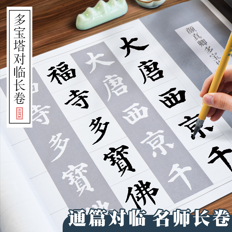 顏真卿楷書對臨長卷宣紙練字專用毛筆近距離對臨字帖多寶塔碑初學者入門臨摹練字帖半生半熟描紅書法專用紙