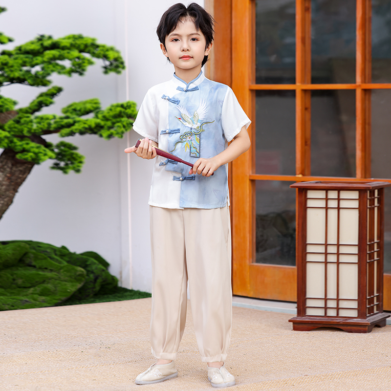男童唐裝漢服夏裝男孩中國風童裝唐裝新款兒童公子古裝國學演出服
