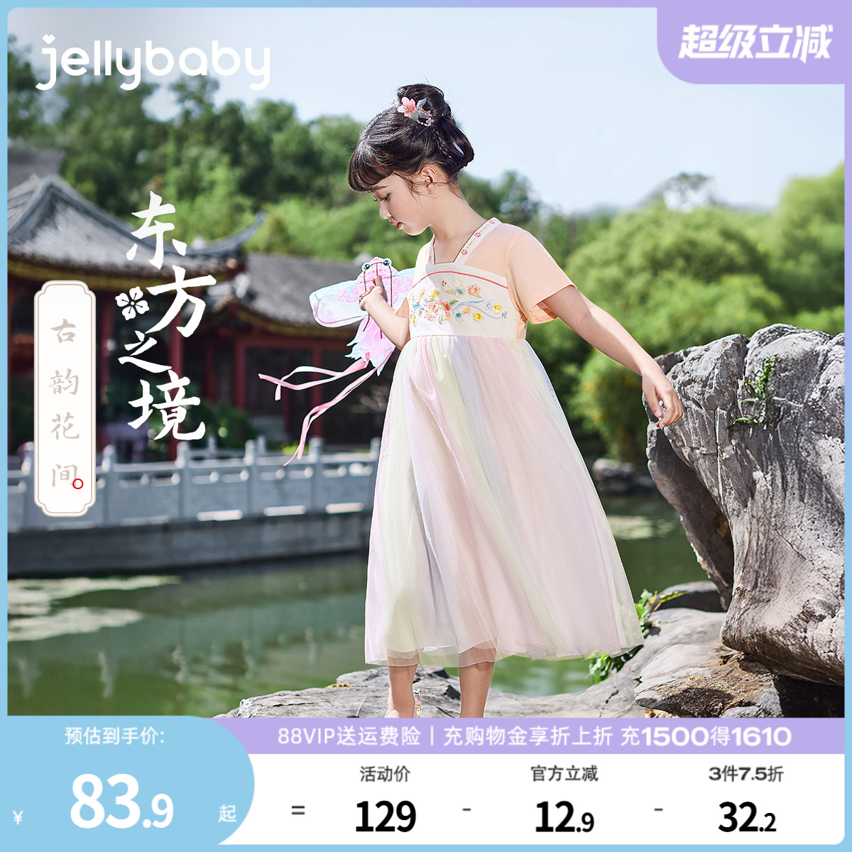 烏扣. 宋詞女童漢服夏款兒童中國風改良古裝宋制對襟套裝夏季春夏