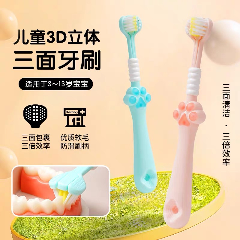 貝特倍護兒童三面牙刷寶寶牙刷兒童牙刷3-6-12寬頭軟毛清潔乳牙