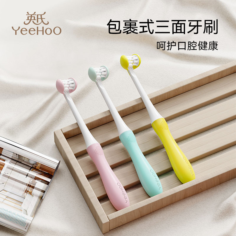 英氏三面兒童牙刷3到6-12歲軟毛牙刷全面包裹口腔清潔學生換牙期