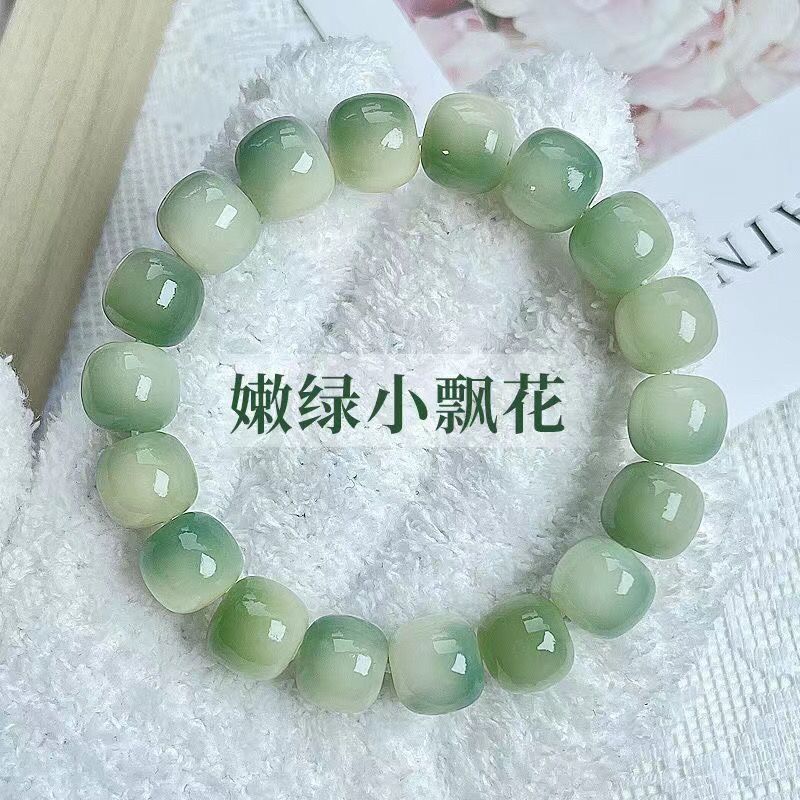 正品半山半水綠飄花菩提手串原生態高油高密盤玩易上色繞指柔