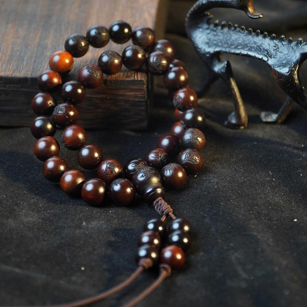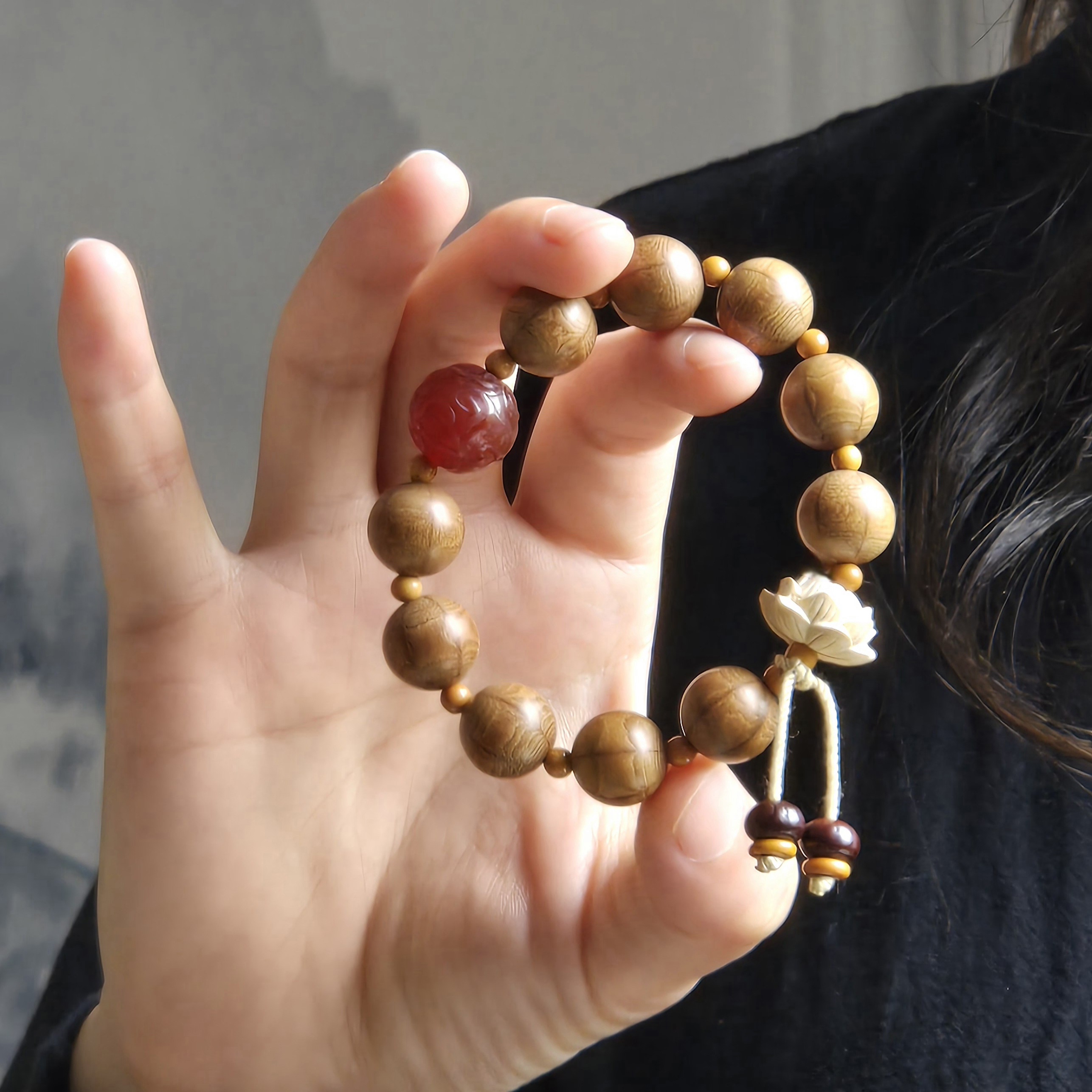 原創設計老料六道木新中式回紋瑪瑙黃楊木蓮花香味木質文玩手串女
