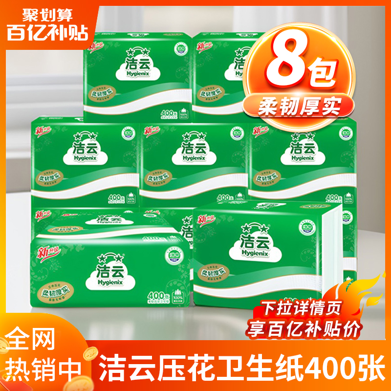 潔云4D溶衛生紙390張家用壓花廁所專用平板可溶廁紙官方旗艦正品