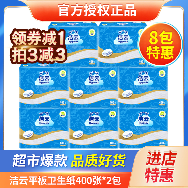 潔云衛生紙平板紙草紙廁紙400張家庭實惠刀切紙加韌壓花10包家用