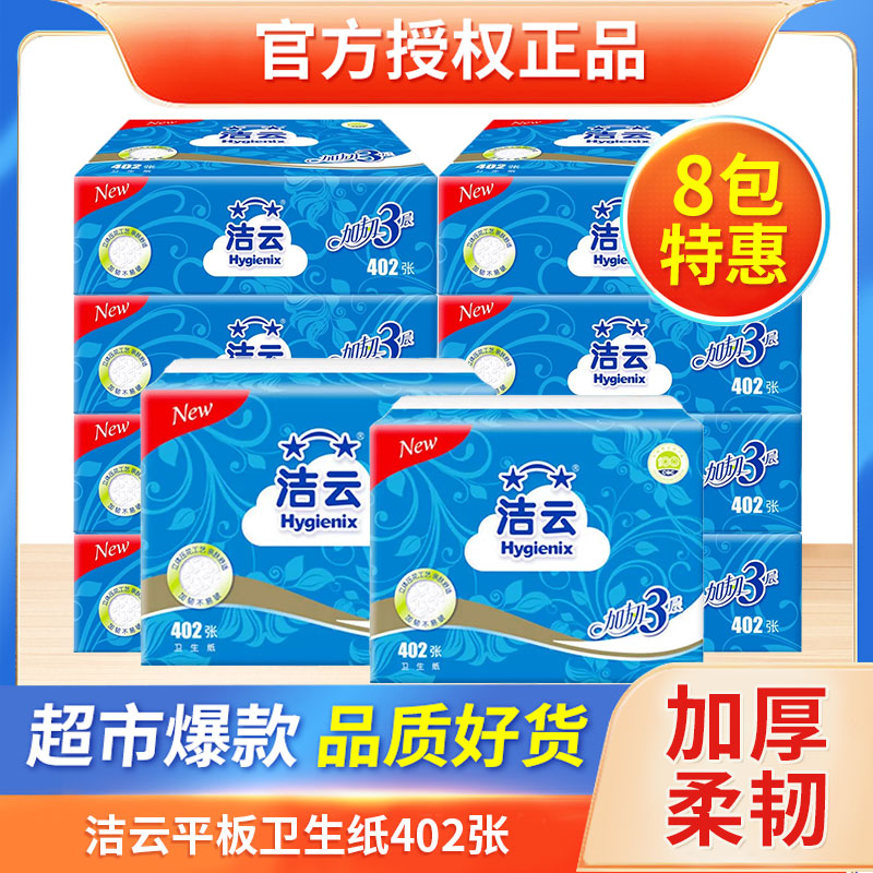 潔云衛生紙402張廁紙壓花家用加厚平板木漿草紙刀切紙整箱實惠裝