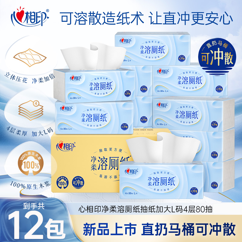 心相印抽取式衛生紙加大L碼平切紙巾凈柔溶廁紙草紙廁所家用手紙