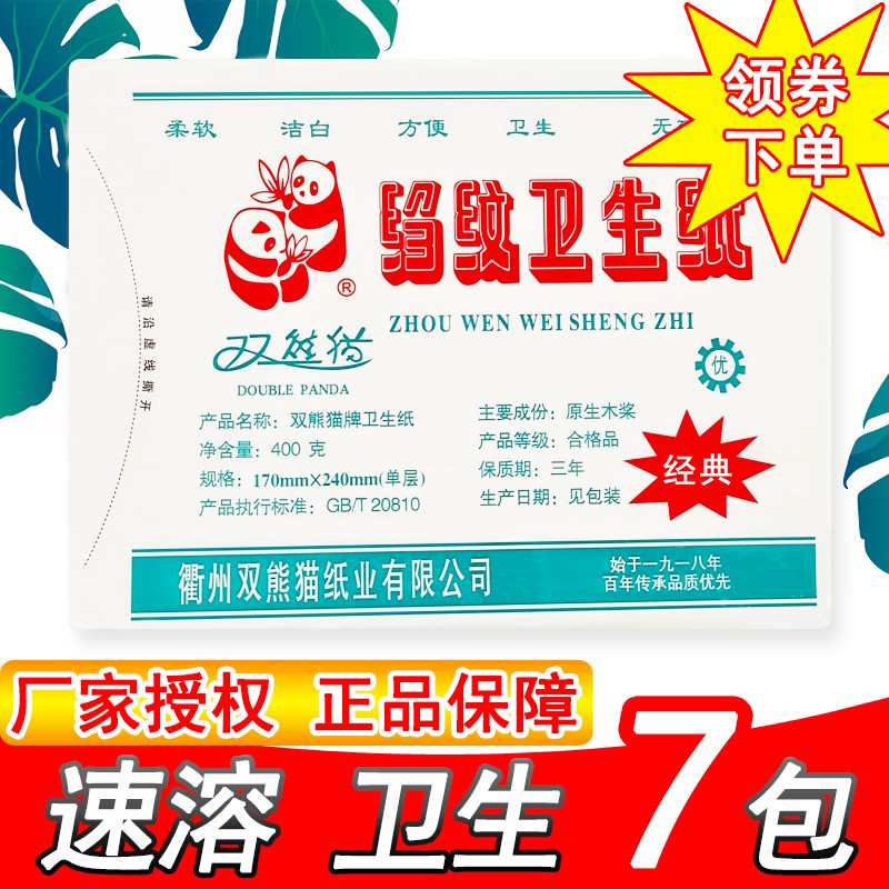 雙熊貓衛生紙400g/200平板皺紋廁紙草紙手紙潔白柔韌吸水速溶包郵