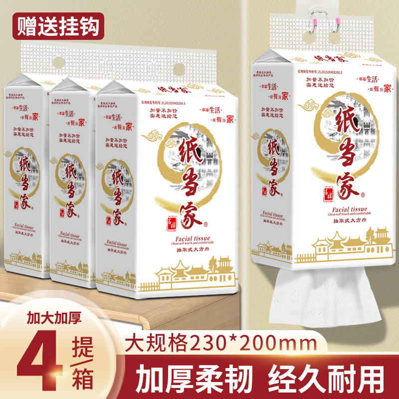 原生木漿懸掛式抽紙12大提鉅量裝家用加厚餐巾紙家庭實惠裝