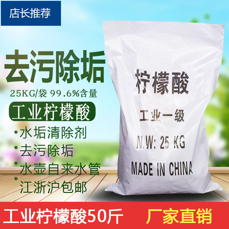 檸檬酸50斤除垢劑工業級去垢飲水機清洗劑酒店管道水垢清潔劑25kg