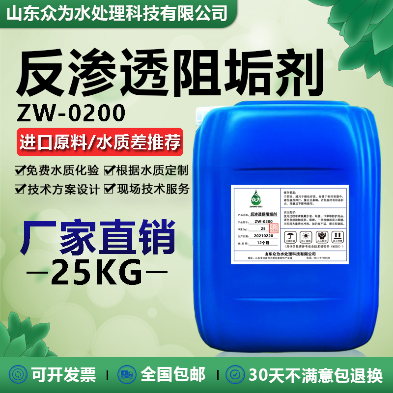 眾為反滲透阻垢劑ZW0100 純凈水食品級RO膜除垢劑水處理濃縮25KG