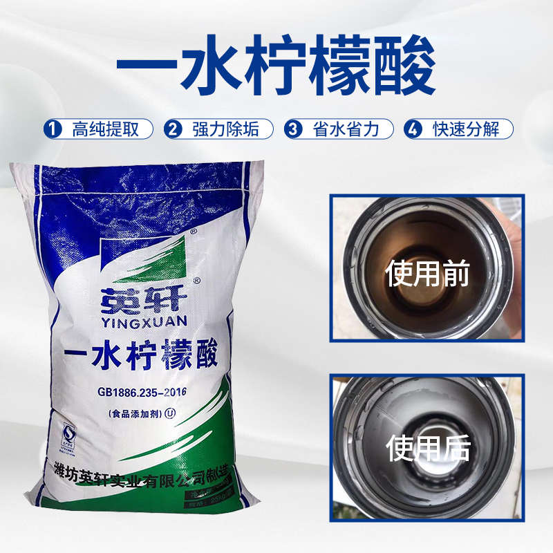 食品級檸檬酸50斤英軒一水除垢清潔劑枸櫞酸食用級熱水器水垢清潔