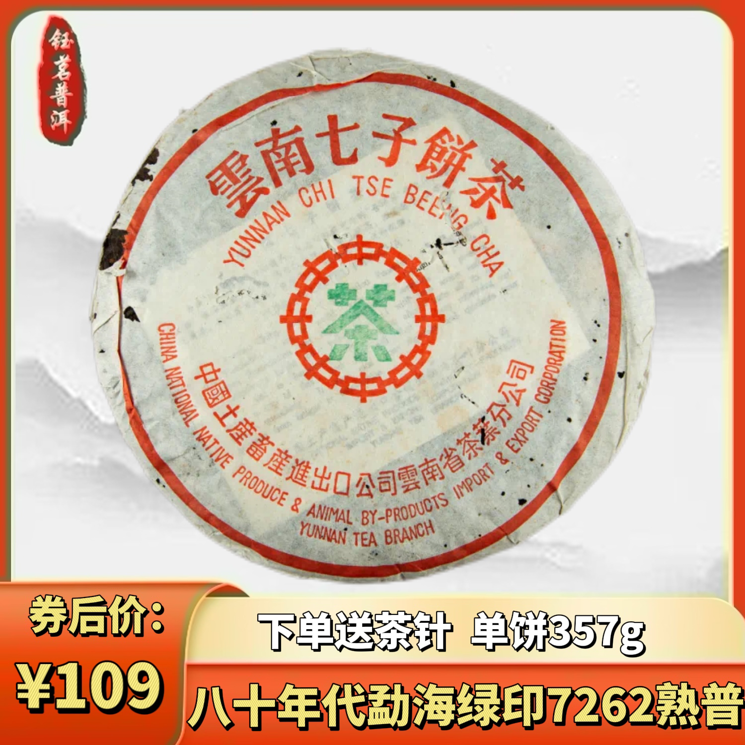干倉八十年代中茶綠印熟茶7262云南七子餅熟茶餅勐海茶廠普洱熟茶