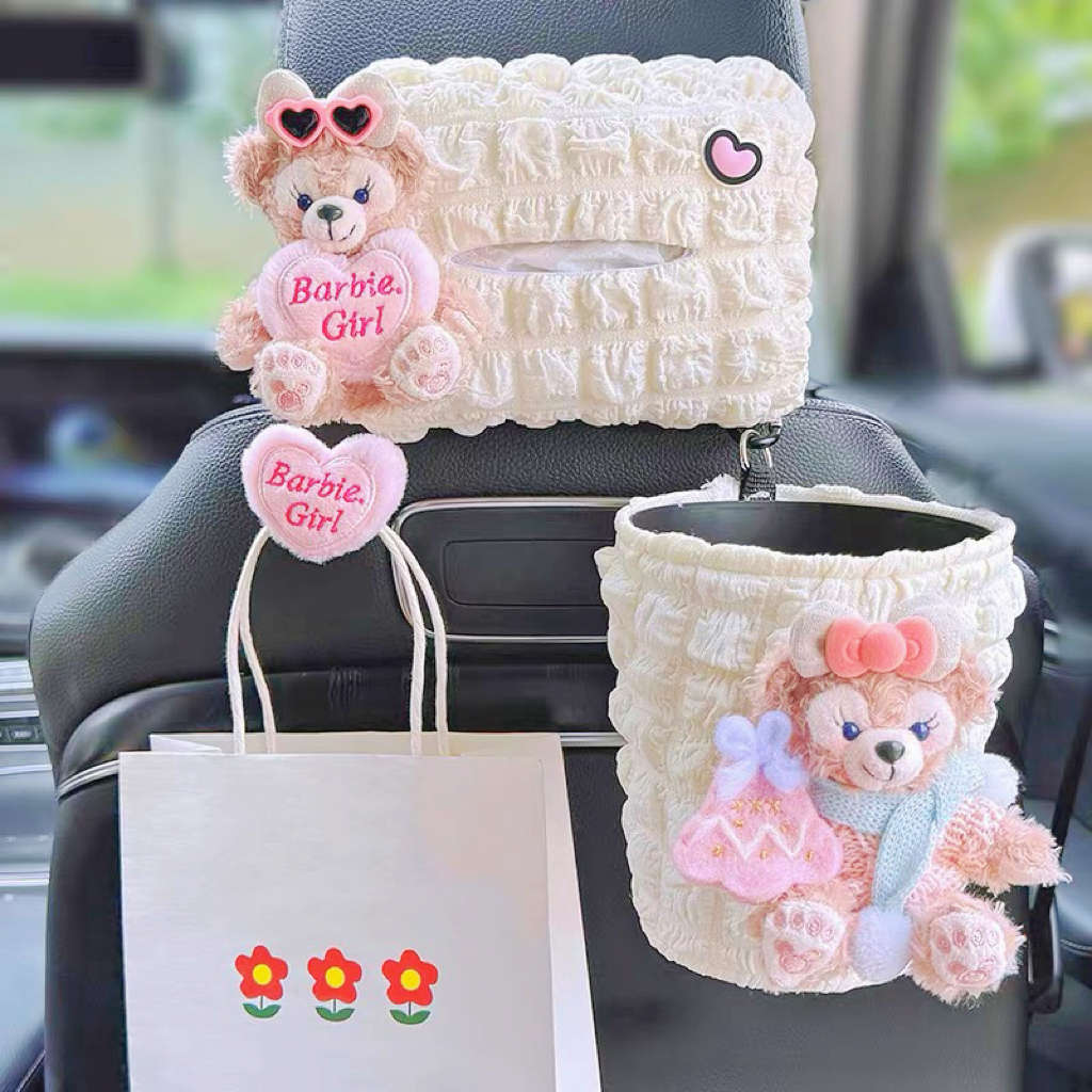 可愛雪莉玫達菲熊車載紙巾盒垃圾桶二合一汽車椅背掛式抽紙盒收納